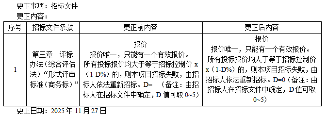原投标文件递交的截止时间为2025年12月3日9时00分,现改为:投标文件递交的截止时间为2025年12月15日9时00分。