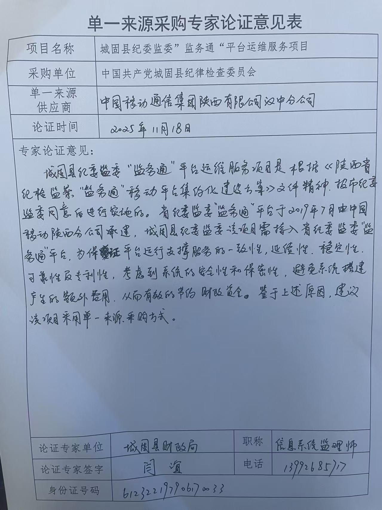 项目名称: 城固县纪委监委”监务通“平台运维