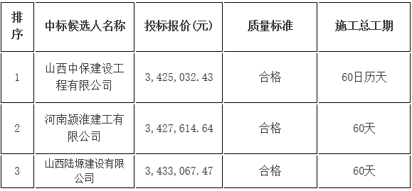 忻州城区忻顿雅苑公共租赁住房项目空气热源及管网工程二次招标中标候选人公示