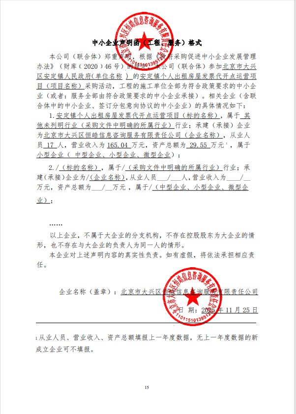 二、项目名称:安定镇个人出租房屋发票代开点运营项目